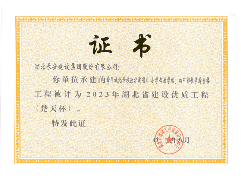 黃岡市黃州區(qū)萬福實驗學(xué)校等9個工程榮獲2022-2023年度第一批湖北省建筑結(jié)構(gòu)優(yōu)質(zhì)工程