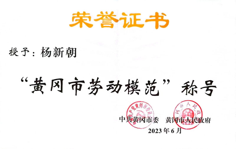 楊新朝經理榮獲“黃岡市勞動模范”稱號