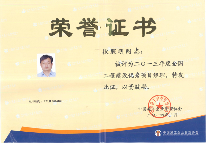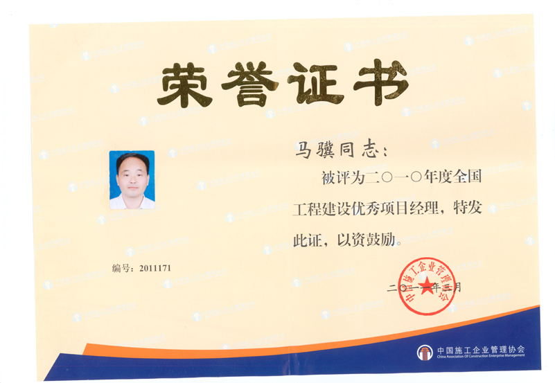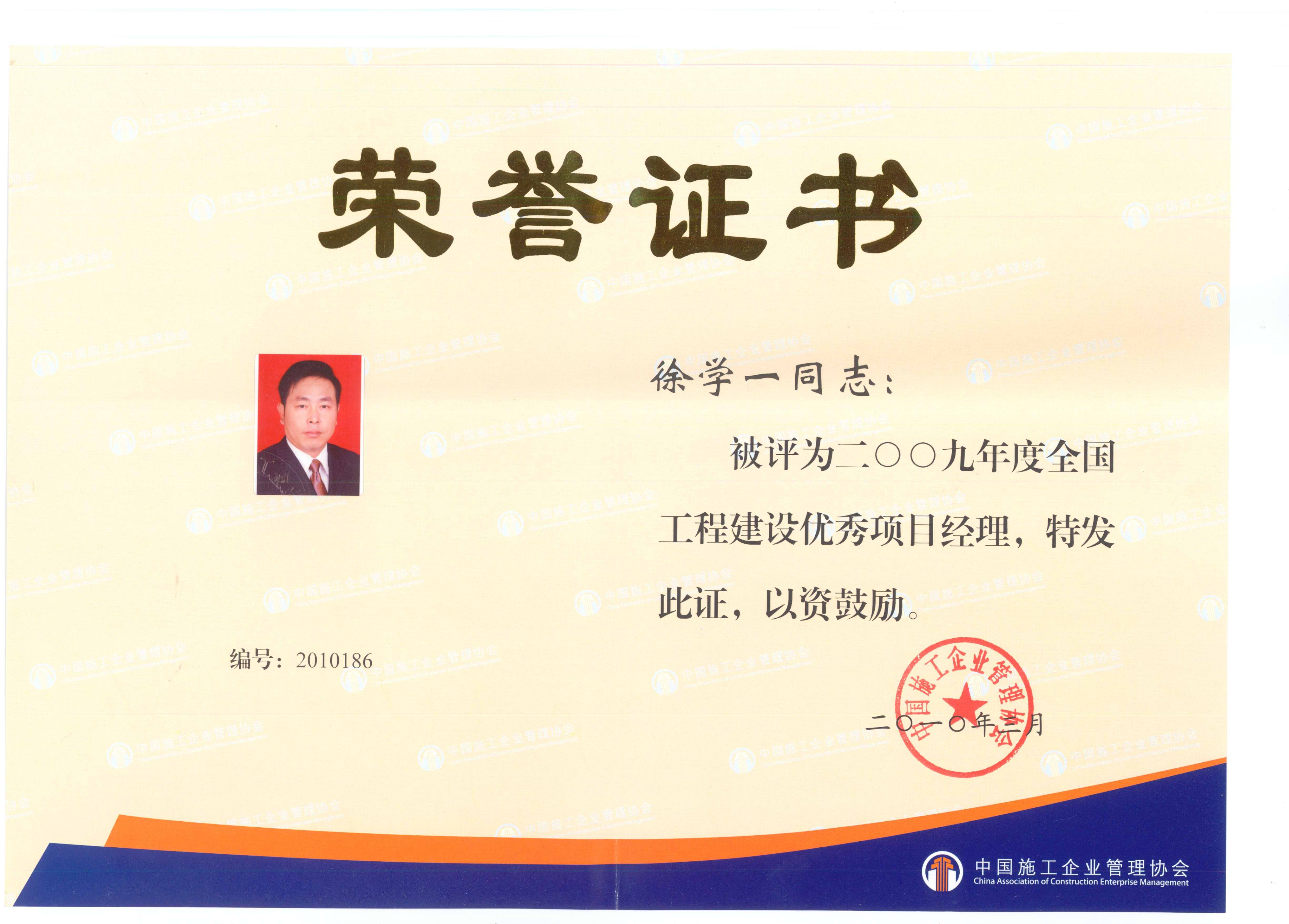 2010年度全國建筑業優秀項目經理(倪世寬)