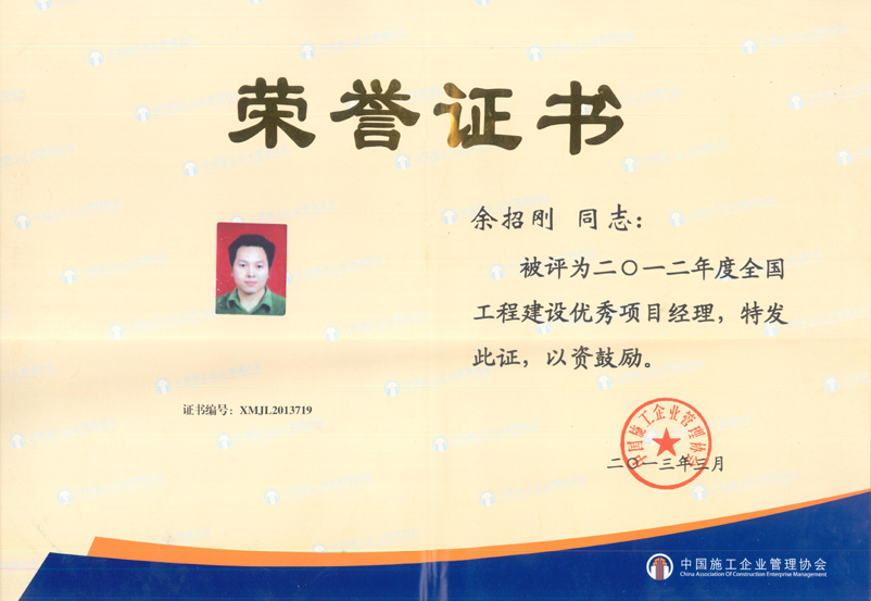 2011年度全國工程建設優秀項目經理(蔣同義)
