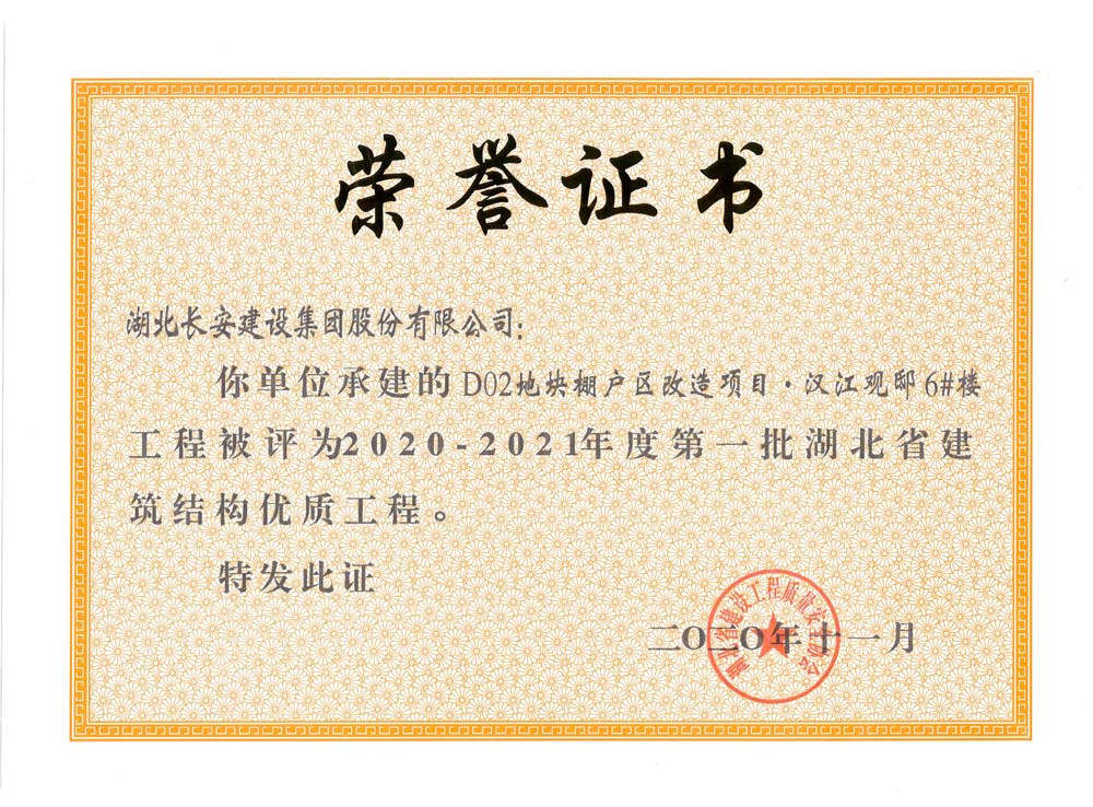 D02地塊棚戶區改造項目丶漢江觀邸6#樓2020-2021年度第一批湖北省建筑結構優質工程