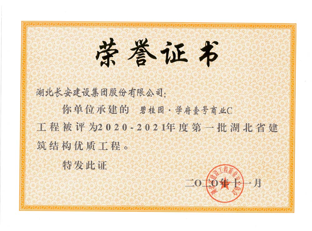 碧桂園·學府壹號商業C2020-2021年度第一批湖北省建筑結構優質工程