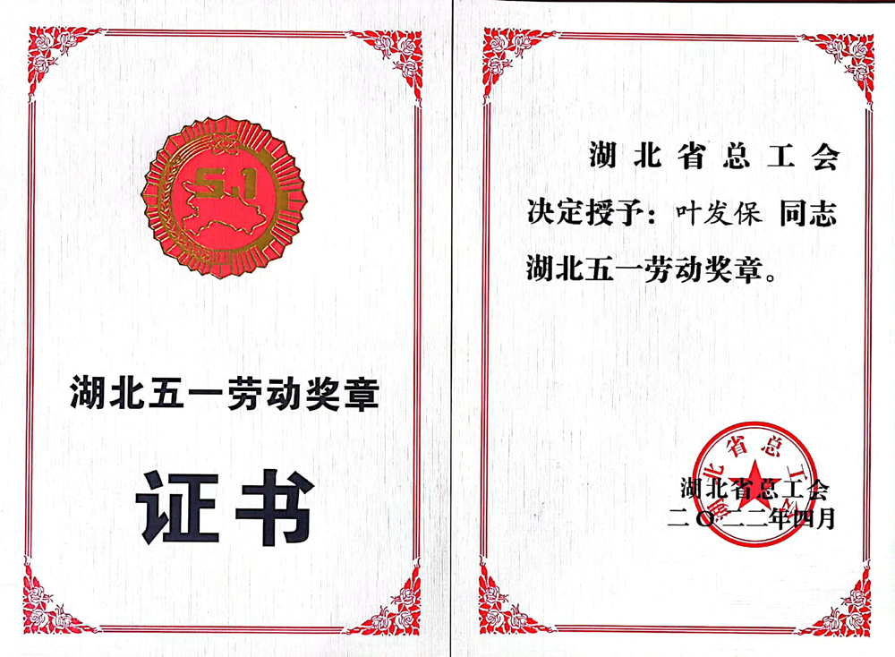 湖北省總工會授予集團總經理葉發保“五一勞動獎章”光榮稱號