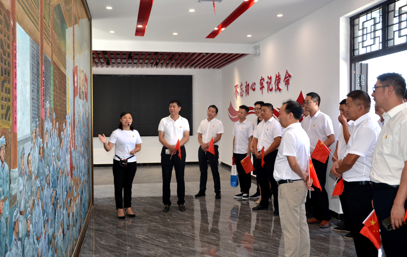 隨后,各位黨員前往英山縣千斤坪紅色黨建示范點參觀,唱國歌,重溫入黨誓詞,并向革命烈士獻花籃。