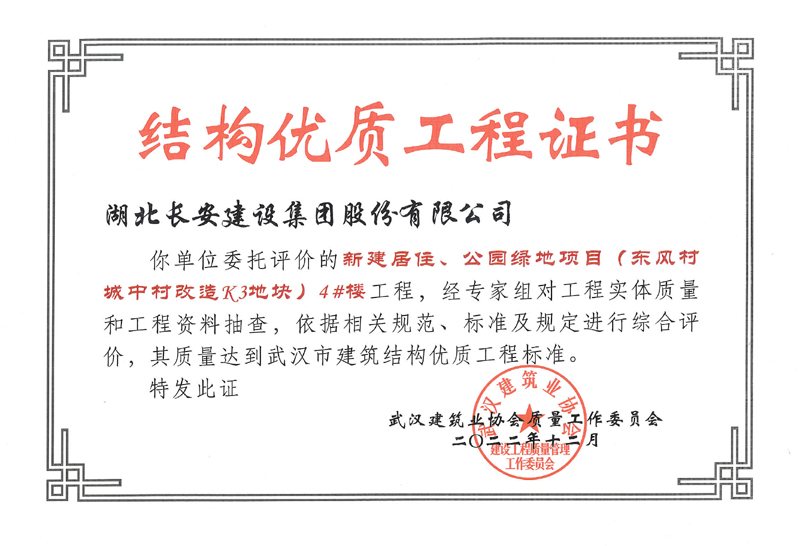 東風(fēng)村城中村改造k3地塊1#、2#、4#樓獲評“武漢市建筑結(jié)構(gòu)優(yōu)質(zhì)工程”