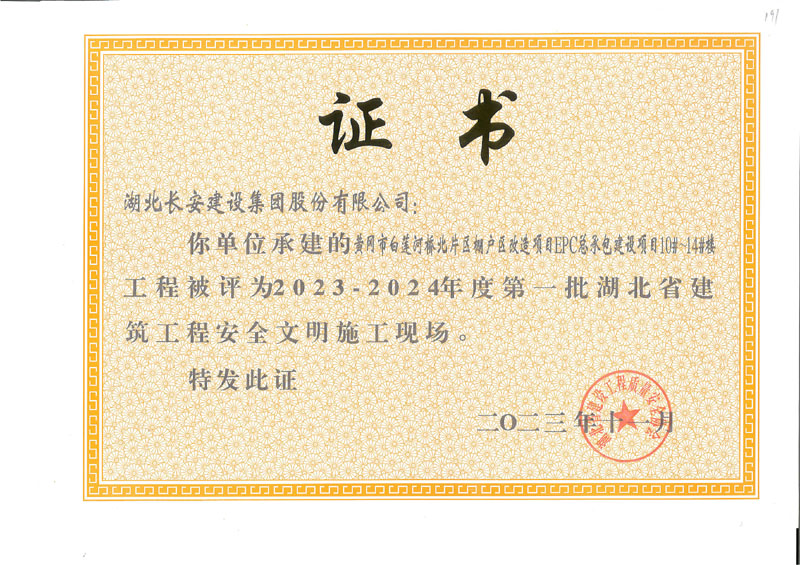黃岡市白蓮河橋北區棚戶改造10#-14#樓等3個工程榮獲2023-2024年度第一批湖北省建筑工程安全文明施工現場