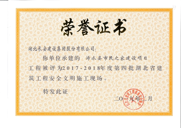 浠水縣市民之家建設項目工程被評為2017-2018年度第四批省安全文明施工現場