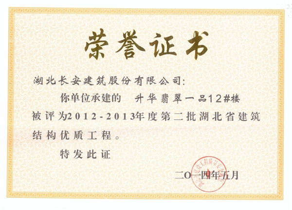 升華翡翠一品12#樓2012-2013年度省建筑結構優質工程