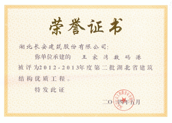 光谷桃花源二期F11#樓2012-2013年度省建筑結構優質工程
