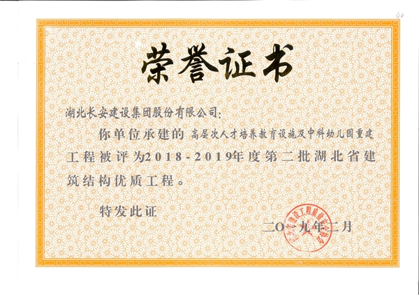 高層次人才培養(yǎng)教育設施及中科幼兒園重建工程被評為2018-2019年度第二批省結構優(yōu)質(zhì)工程