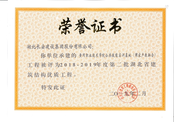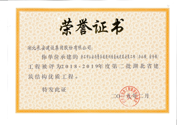 黃石市公安局警務技能訓練基地建筑安裝工程(辦公樓、宿舍樓)工程被評為2018-2019年度第二批省結構優(yōu)質(zhì)工程