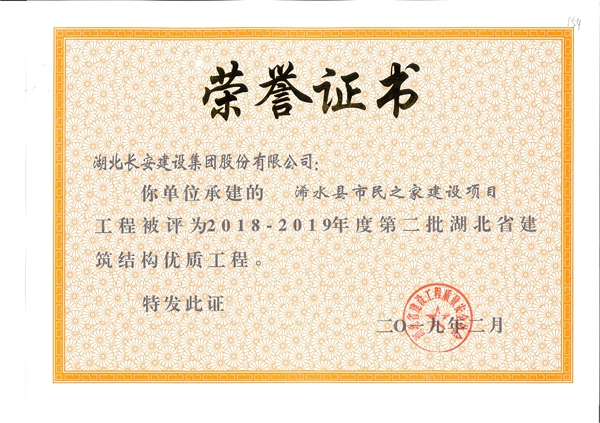 浠水市民之家建設項目工程被評為2018-2019年度第二批省結構優(yōu)質(zhì)工程