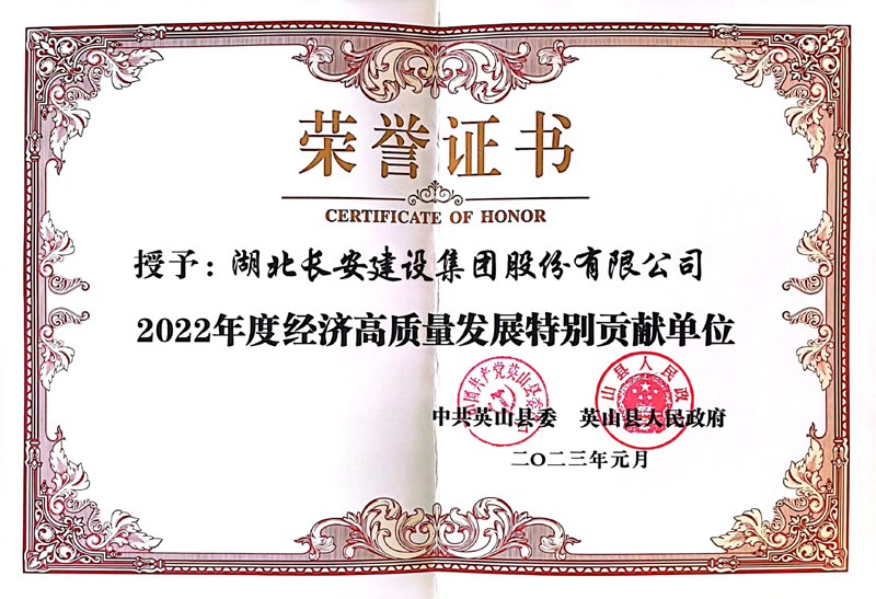 1月30日,2023年英山縣“賡續紅色血脈 加快綠色崛起”部署大會召開,中共英山縣委、英山縣人民政府授予集團“2022年度經濟高質量發展特別貢獻單位”榮譽稱號。在剛剛過去的2022年,集團全局一盤棋,上下一條心,面對疫情的嚴重影響,頂住經濟下行的巨大壓力,克難攻堅,勇毅前行,實現了產業布局上的效量并進和經營上的逆勢增長,向英山縣地方上繳稅收近3億元。