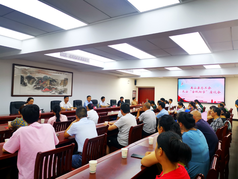 8月22日下午,英山縣總工會、長安“金秋助學”座談會在英山縣大禮堂三樓會議室召開。英山縣委常委黃軍文、縣總工會主席曾毅等領導出席會議,湖北長安建設集團黨委書記、董事長段衛昌代表捐款方湖北長安建設集團股份有限公司發言。