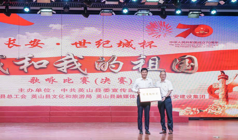 在集團高管領導的關懷和重視下,在各位員工加班加點的勤學苦練下,集團大合唱《長江之歌》在全縣22支隊伍中,脫穎而出,喜獲佳績。英山縣委常委、宣傳部長盧峰親自為集團董事長段衛昌頒發“優秀組織獎”。