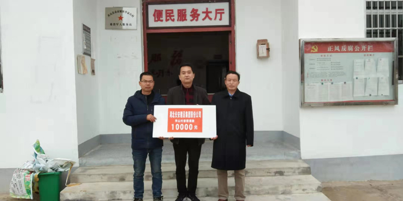 誕生于英山、成長于英山的湖北長安建設集團對家鄉永懷感恩之心和報效之情,堅持走愛心企業、責任企業的道路,積極響應政府號召,主動投入“美麗鄉村建設”和“精準扶貧"工作,長期開展捐款扶貧、就業扶貧、醫療扶貧、教育扶貧、文化扶貧、鄉村建設扶貧、公益扶貧等活動,助力政府打贏精準扶貧攻堅戰,為家鄉人民送去溫暖與關愛。近日,長安集團向高山貧困村一李山村捐款1萬元,助力該村的村道橋梁建設,為村民創造便利的出行環境,贏得了李山村干部群眾的好評。