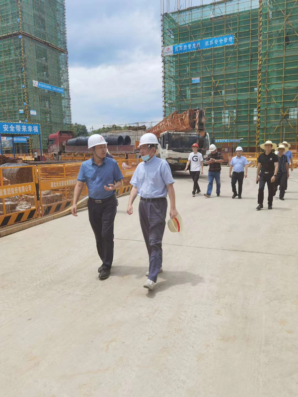 7月12日,省住建廳副廳長金濤、黃石住建局副局長馮海鷹在假日放棄休息時間,蒞臨黃石尚湖灣尚書院項目檢查防汛、安全生產工作。