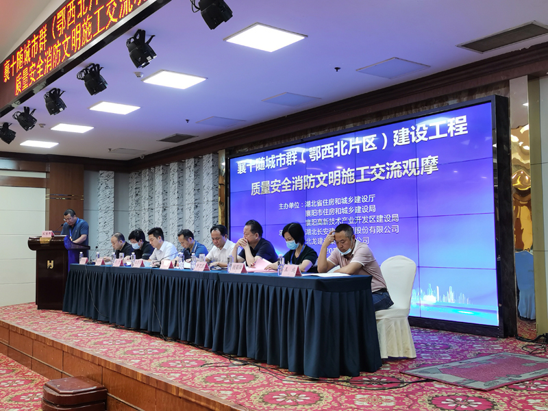 8月26日,由省住建廳、襄陽市住建局、襄陽高新區建設局主辦,湖北長安建設集團股份有限公司(簡稱長安建設集團)、北龍建設集團有限公司承辦的襄陽十堰隨州城市群(鄂西北片區)建筑工程質量安全消防文明施工經驗交流觀摩會在襄陽隆重召開。省住建廳質安處處長王志勇出席會議并講話,襄陽市住建局副局長柳建庭主持。省住建廳和襄陽、孝感、十堰、隨州、神農架林區及襄陽各縣(市,區)住建部門及鄂西北片區建筑企業代表共計320余人參會。此次設主會場1個、分會場3個。通過云平臺進行線上、線下密切互動,同步直播。