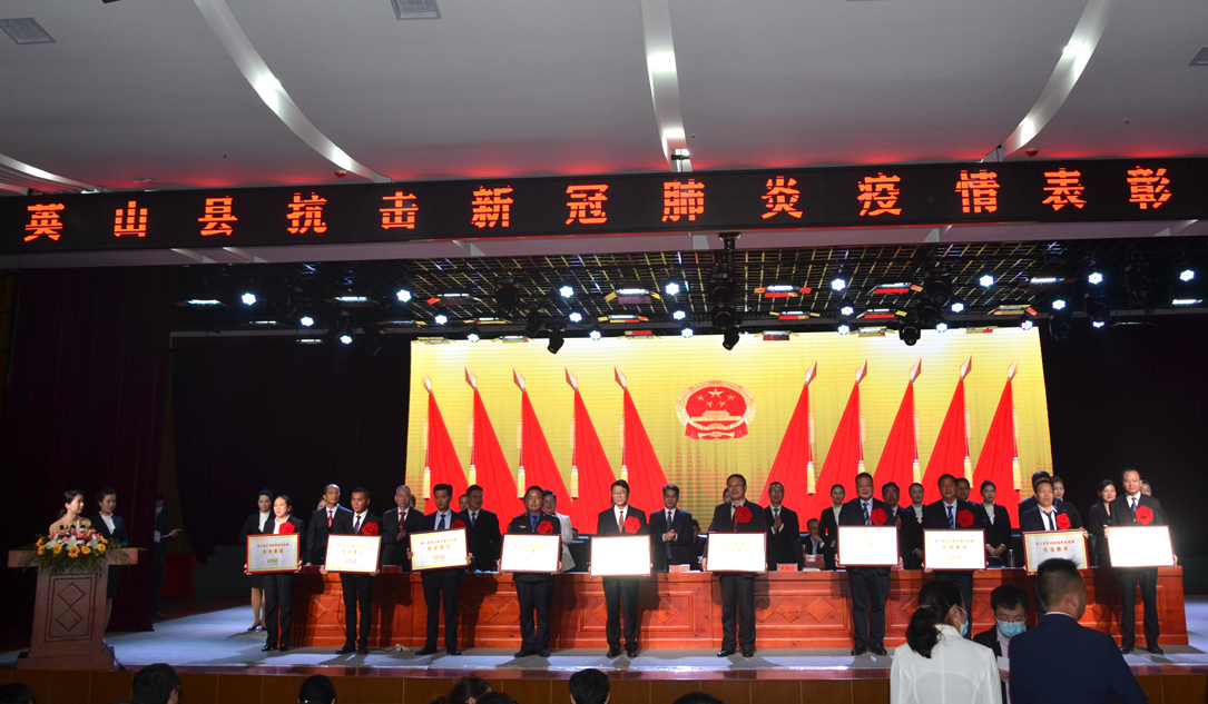 10月28日上午,英山縣抗擊新冠肺炎疫情表彰大會在縣職教中心召開。湖北長安建設集團股份有限公司榮獲“抗擊疫情先進集體”稱號。集團是英山縣獲獎的唯一一家企業。葉發保總經理代表公司上臺領獎。